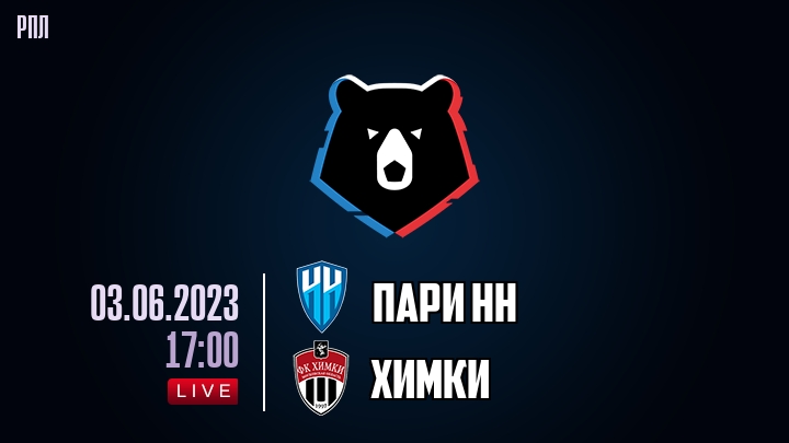 В турнирной таблице чемпионата РПЛ Пари НН занимает 13-е место, а Химки занимает 17-е место .