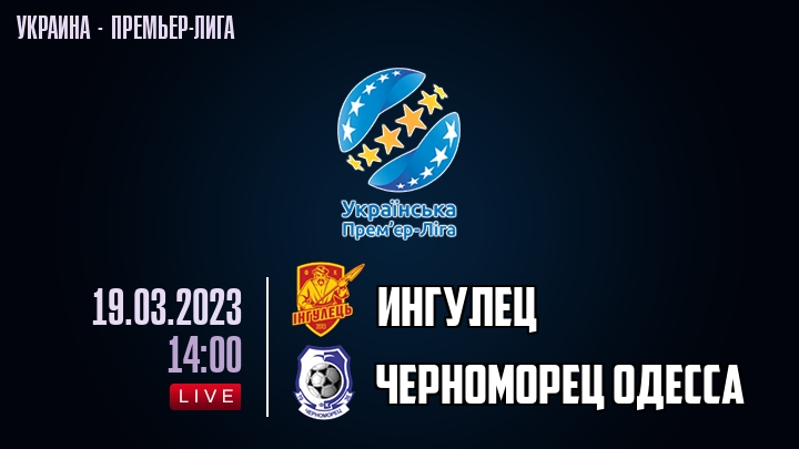 19 марта 2023 года, состоялась онлайн трансляция футбольного матча между футбольным клубом Ингулец и футбольным клубом Черноморец Одесса, проходящего в рамках Премьер лиги Украины.