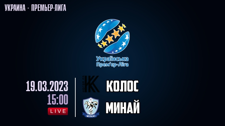 19 марта 2023 года, состоялась онлайн трансляция футбольного матча между футбольным клубом Колос и футбольным клубом Минай, проходящего в рамках Премьер лиги Украины.