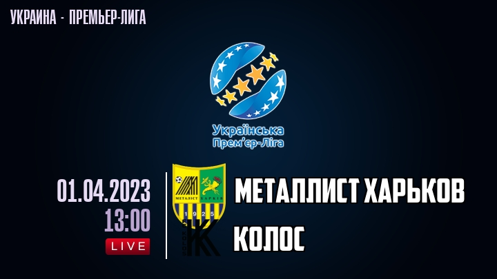 1 апреля 2023 года, состоялась онлайн трансляция футбольного матча между футбольным клубом Металлист Харьков и футбольным клубом Колос, проходящего в рамках Премьер лиги Украины.