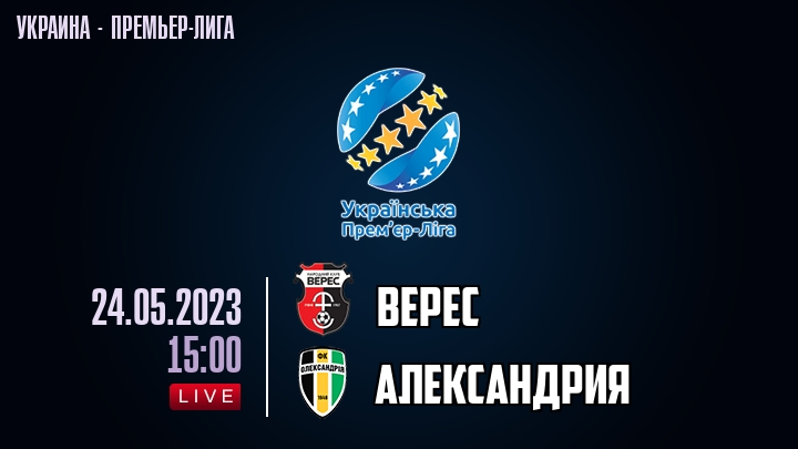 24 мая 2023 года, состоялась онлайн трансляция футбольного матча между футбольным клубом Верес и футбольным клубом Александрия, проходящего в рамках Премьер лиги Украины.