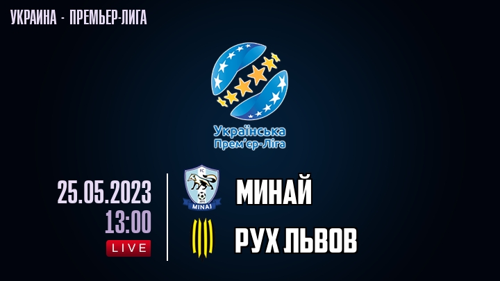 25 мая 2023 года, состоялась онлайн трансляция футбольного матча между футбольным клубом Минай и футбольным клубом Рух Львов, проходящего в рамках Премьер лиги Украины.