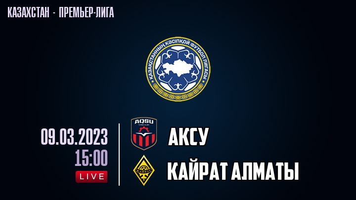 9 марта 2023 года, состоялась онлайн трансляция футбольного матча между футбольным клубом Аксу и футбольным клубом Кайрат Алматы, проходящего в рамках Премьер лиги Казахстана.