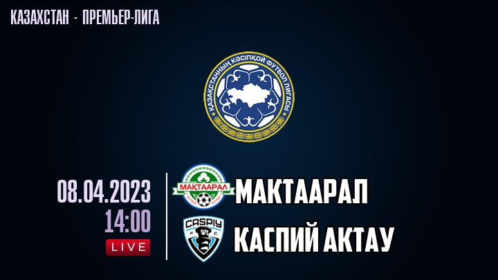 8 апреля 2023 года, состоялась онлайн трансляция футбольного матча между футбольным клубом Мактаарал и футбольным клубом Каспий Актау, проходящего в рамках Премьер лиги Казахстана.