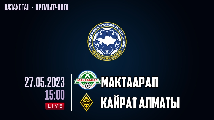 27 мая 2023 года, состоялась онлайн трансляция футбольного матча между футбольным клубом Мактаарал и футбольным клубом Кайрат Алматы, проходящего в рамках Премьер лиги Казахстана.