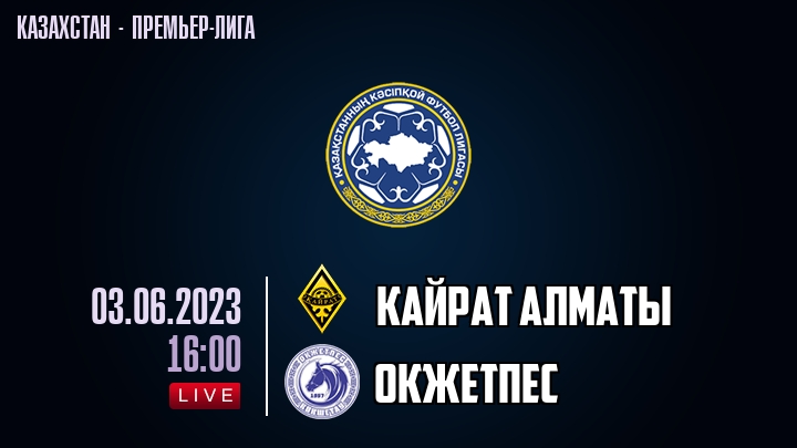 3 июня 2023 года, состоялась онлайн трансляция футбольного матча между футбольным клубом Кайрат Алматы и футбольным клубом Окжетпес, проходящего в рамках Премьер лиги Казахстана.