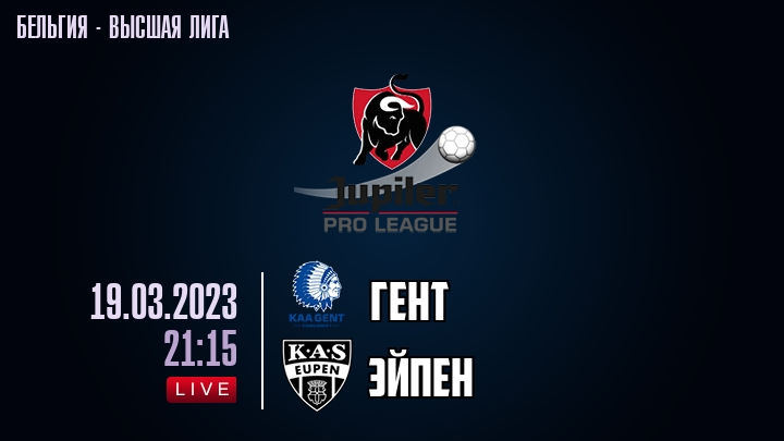 19 марта 2023 года, состоялась онлайн трансляция футбольного матча между футбольным клубом Гент и футбольным клубом Эйпен, проходящего в рамках Высшей лиги Бельгии.