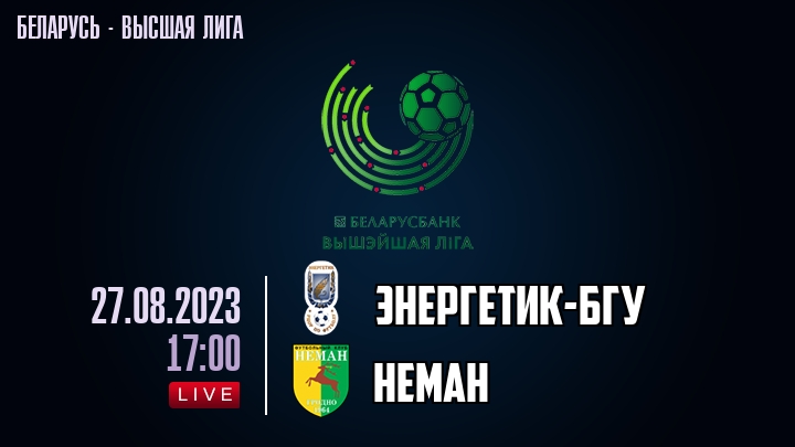27 августа 2023 года, состоялась онлайн трансляция футбольного матча между футбольным клубом Энергетик-БГУ и футбольным клубом Неман, проходящего в рамках Высшей лиги Беларуси.
