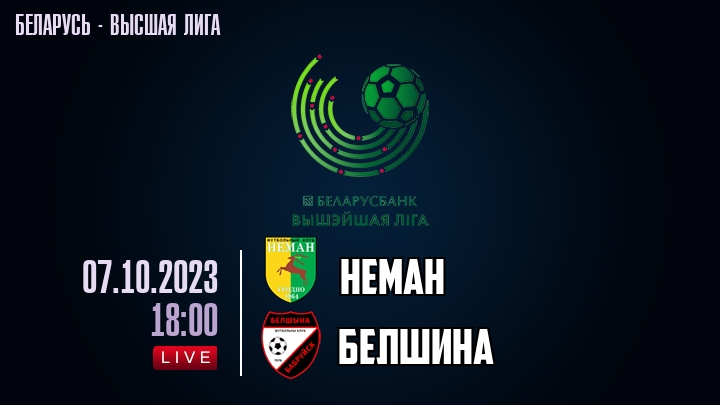 7 октября 2023 года, состоялась онлайн трансляция футбольного матча между футбольным клубом Неман и футбольным клубом Белшина, проходящего в рамках Высшей лиги Беларуси.