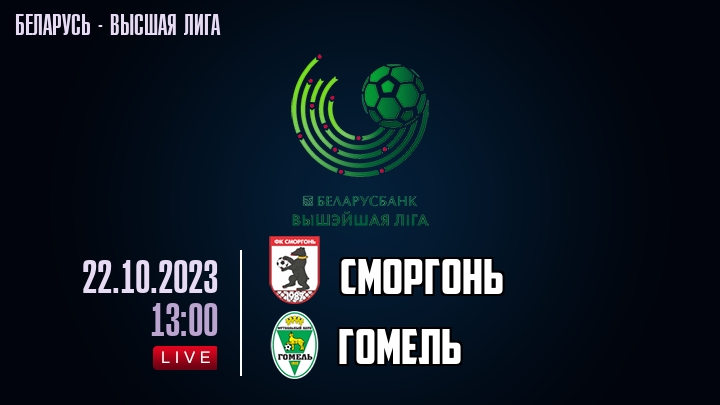 22 октября 2023 года, состоялась онлайн трансляция футбольного матча между футбольным клубом Сморгонь и футбольным клубом Гомель, проходящего в рамках Высшей лиги Беларуси.