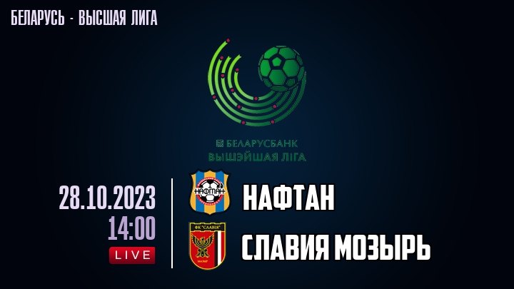 28 октября 2023 года, состоялась онлайн трансляция футбольного матча между футбольным клубом Нафтан и футбольным клубом Славия Мозырь, проходящего в рамках Высшей лиги Беларуси.