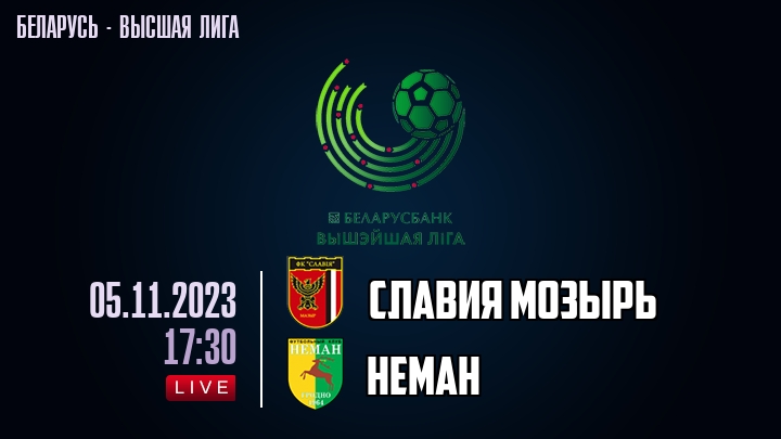 5 ноября 2023 года, состоялась онлайн трансляция футбольного матча между футбольным клубом Славия Мозырь и футбольным клубом Неман, проходящего в рамках Высшей лиги Беларуси.