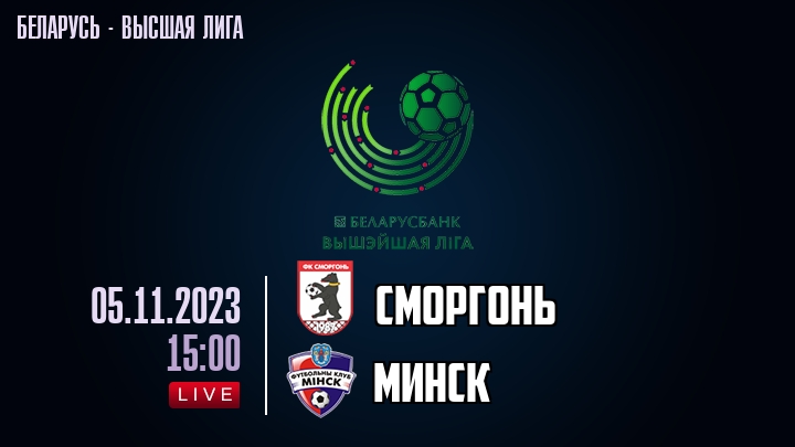 5 ноября 2023 года, состоялась онлайн трансляция футбольного матча между футбольным клубом Сморгонь и футбольным клубом Минск, проходящего в рамках Высшей лиги Беларуси.