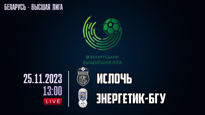 25 ноября 2023 года, состоялась онлайн трансляция футбольного матча между футбольным клубом Ислочь и футбольным клубом Энергетик-БГУ, проходящего в рамках Высшей лиги Беларуси.