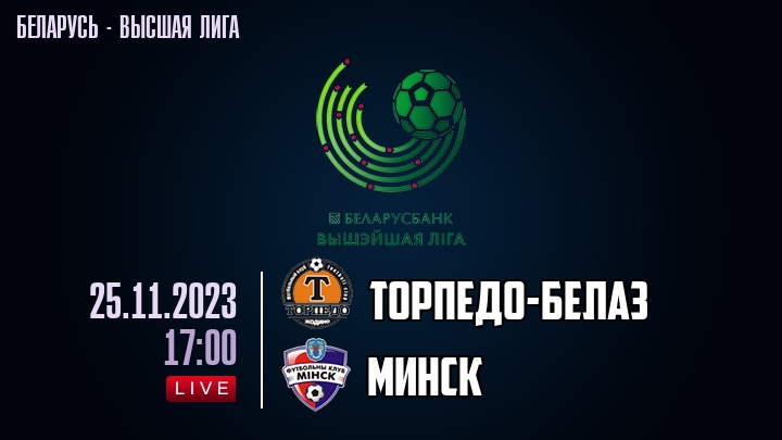 25 ноября 2023 года, состоялась онлайн трансляция футбольного матча между футбольным клубом Торпедо-БелАЗ и футбольным клубом Минск, проходящего в рамках Высшей лиги Беларуси.