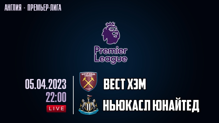 5 апреля 2023 года, состоялась онлайн трансляция футбольного матча между футбольным клубом Вест Хэм и футбольным клубом Ньюкасл Юнайтед, проходящего в рамках Премьер лиги Англии.