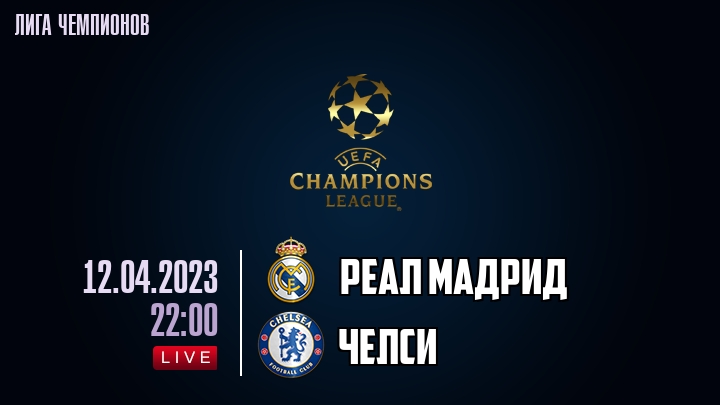 12 апреля 2023 года, состоялась онлайн трансляция футбольного матча между футбольным клубом Реал Мадрид и футбольным клубом Челси, проходящего в рамках Лиги Чемпионов.