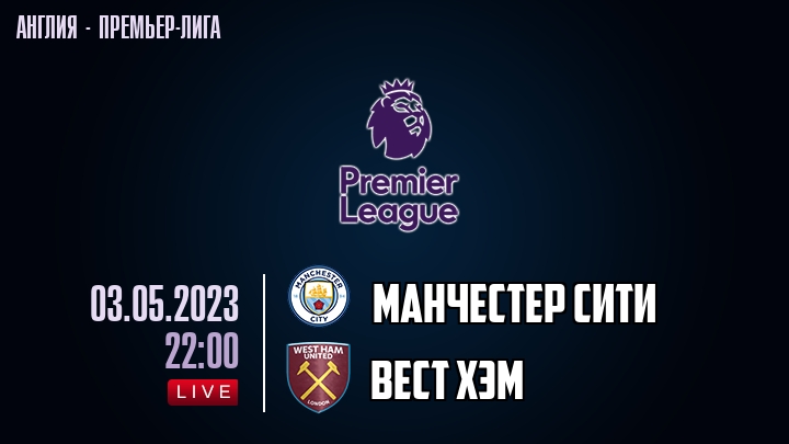 3 мая 2023 года, состоялась онлайн трансляция футбольного матча между футбольным клубом Манчестер Сити и футбольным клубом Вест Хэм, проходящего в рамках Премьер лиги Англии.