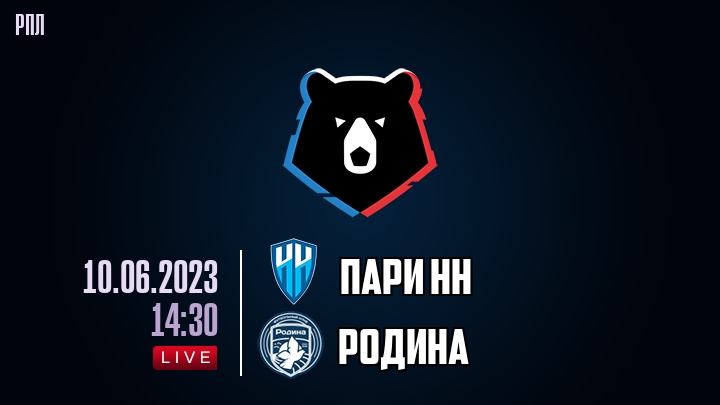 10 июня 2023 года, состоялась онлайн трансляция футбольного матча между футбольным клубом Пари НН и футбольным клубом Родина, проходящего в рамках чемпионата РПЛ.