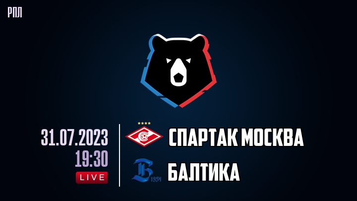 31 июля 2023 года, состоялась онлайн трансляция футбольного матча между футбольным клубом Спартак Москва и футбольным клубом Балтика, проходящего в рамках чемпионата РПЛ.