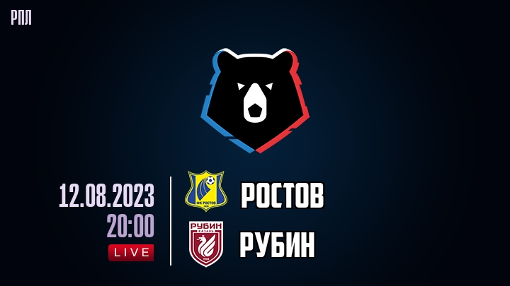 12 августа 2023 года, состоялась онлайн трансляция футбольного матча между футбольным клубом Ростов и футбольным клубом Рубин, проходящего в рамках чемпионата РПЛ.