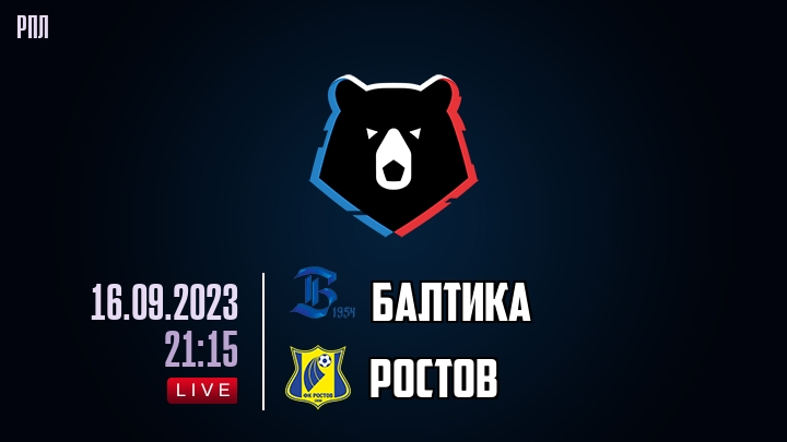 16 сентября 2023 года, состоялась онлайн трансляция футбольного матча между футбольным клубом Балтика и футбольным клубом Ростов, проходящего в рамках чемпионата РПЛ.