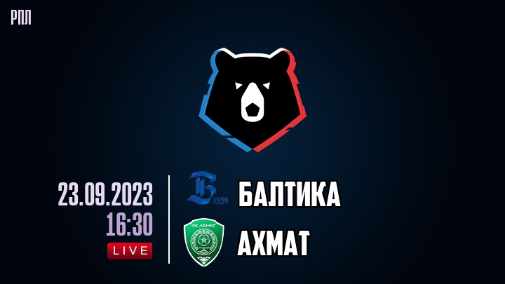23 сентября 2023 года, состоялась онлайн трансляция футбольного матча между футбольным клубом Балтика и футбольным клубом Ахмат, проходящего в рамках чемпионата РПЛ.