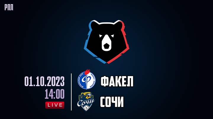 1 октября 2023 года, состоялась онлайн трансляция футбольного матча между футбольным клубом Факел и футбольным клубом Сочи, проходящего в рамках чемпионата РПЛ.
