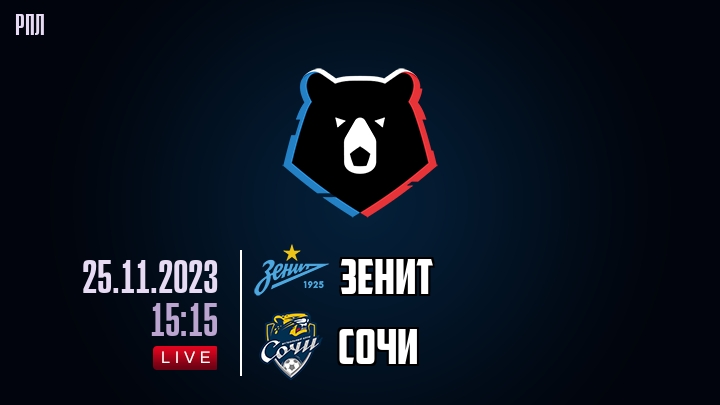 25 ноября 2023 года, состоялась онлайн трансляция футбольного матча между футбольным клубом Зенит и футбольным клубом Сочи, проходящего в рамках чемпионата РПЛ.