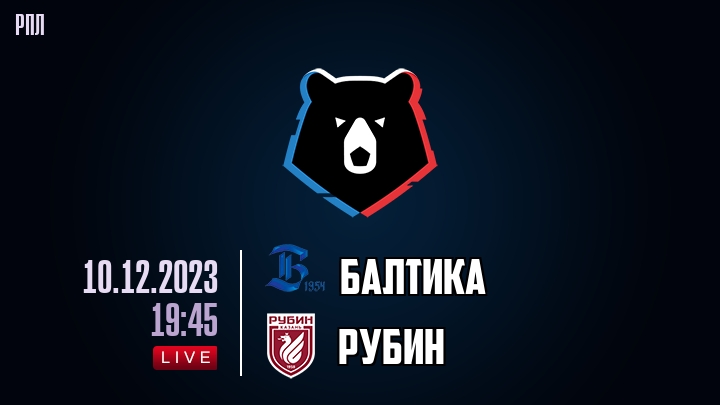 10 декабря 2023 года, состоялась онлайн трансляция футбольного матча между футбольным клубом Балтика и футбольным клубом Рубин, проходящего в рамках чемпионата РПЛ.