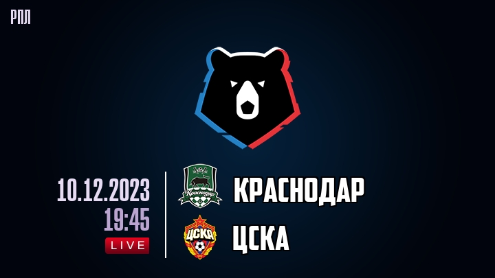 10 декабря 2023 года, состоялась онлайн трансляция футбольного матча между футбольным клубом Краснодар и футбольным клубом ЦСКА, проходящего в рамках чемпионата РПЛ.
