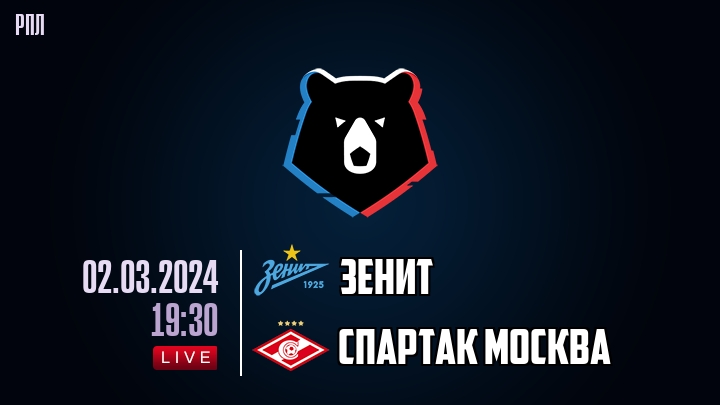 2 марта 2024 года, состоялась онлайн трансляция футбольного матча между футбольным клубом Зенит и футбольным клубом Спартак Москва, проходящего в рамках чемпионата РПЛ.