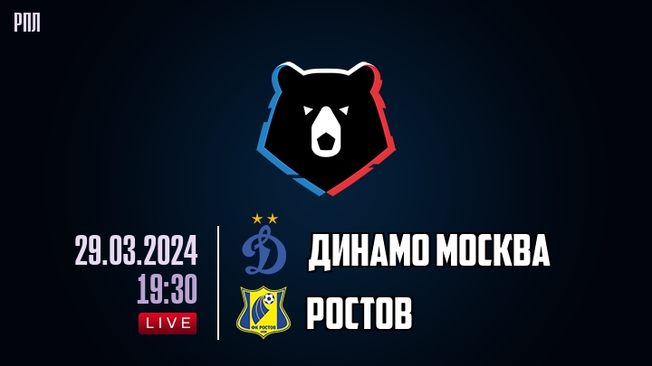 29 марта 2024 года, состоялась онлайн трансляция футбольного матча между футбольным клубом Динамо Москва и футбольным клубом Ростов, проходящего в рамках чемпионата РПЛ.