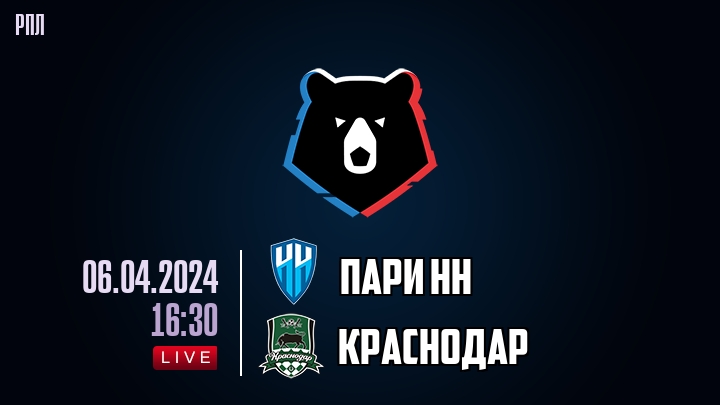 6 апреля 2024 года, состоялась онлайн трансляция футбольного матча между футбольным клубом Пари НН и футбольным клубом Краснодар, проходящего в рамках чемпионата РПЛ.