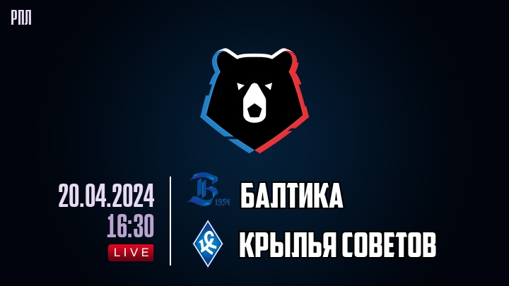 20 апреля 2024 года, состоялась онлайн трансляция футбольного матча между футбольным клубом Балтика и футбольным клубом Крылья Советов, проходящего в рамках чемпионата РПЛ.