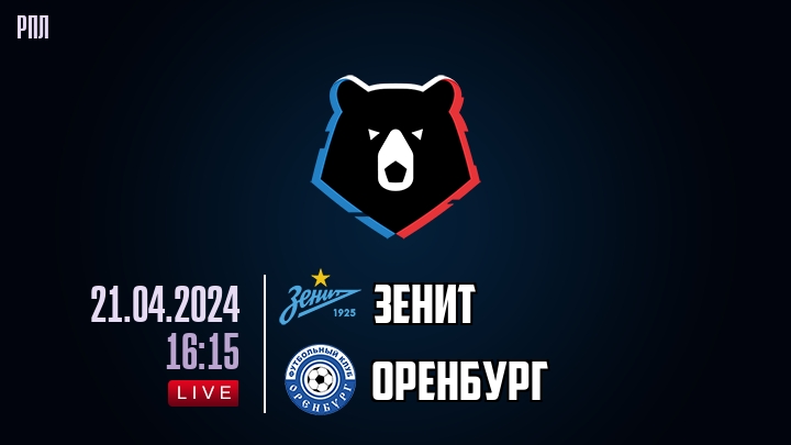 21 апреля 2024 года, состоялась онлайн трансляция футбольного матча между футбольным клубом Зенит и футбольным клубом Оренбург, проходящего в рамках чемпионата РПЛ.
