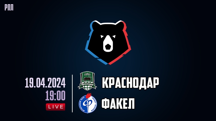 19 апреля 2024 года, состоялась онлайн трансляция футбольного матча между футбольным клубом Краснодар и футбольным клубом Факел, проходящего в рамках чемпионата РПЛ.