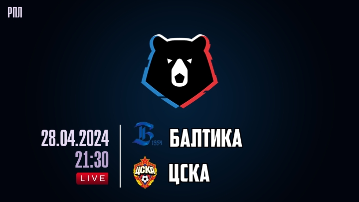28 апреля 2024 года, состоялась онлайн трансляция футбольного матча между футбольным клубом Балтика и футбольным клубом ЦСКА, проходящего в рамках чемпионата РПЛ.