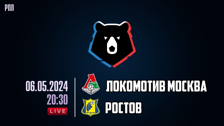 6 мая 2024 года, состоялась онлайн трансляция футбольного матча между футбольным клубом Локомотив Москва и футбольным клубом Ростов, проходящего в рамках чемпионата РПЛ.