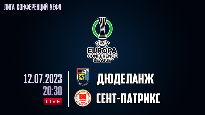 12 июля 2023 года, состоялась онлайн трансляция футбольного матча между футбольным клубом Дюделанж и футбольным клубом Сент-Патрикс, проходящего в рамках Лиги конференций УЕФА.