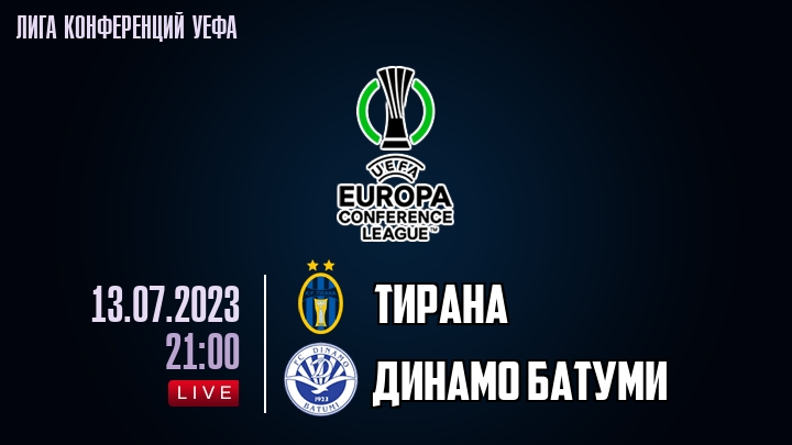13 июля 2023 года, состоялась онлайн трансляция футбольного матча между футбольным клубом Тирана и футбольным клубом Динамо Батуми, проходящего в рамках Лиги конференций УЕФА.