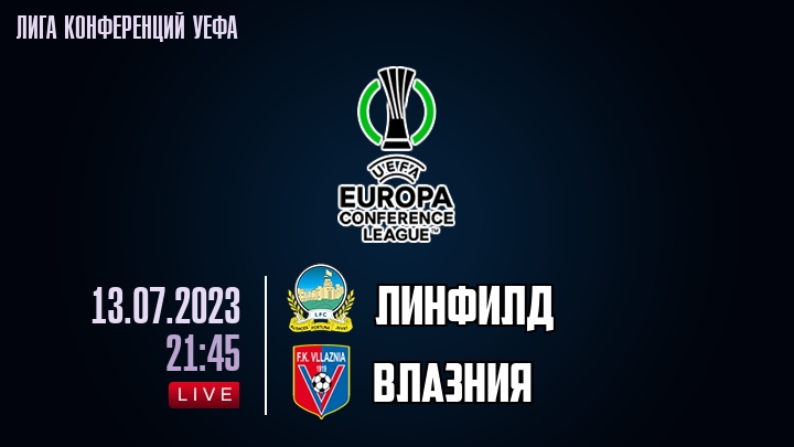 13 июля 2023 года, состоялась онлайн трансляция футбольного матча между футбольным клубом Линфилд и футбольным клубом Влазния, проходящего в рамках Лиги конференций УЕФА.