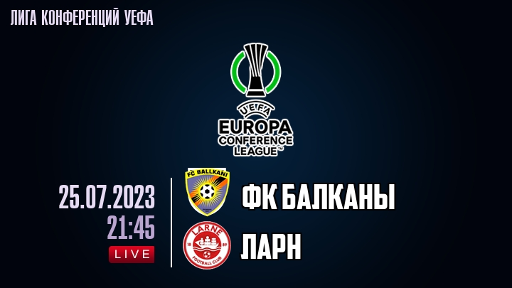 25 июля 2023 года, состоялась онлайн трансляция футбольного матча между футбольным клубом ФК Балканы и футбольным клубом Ларн, проходящего в рамках Лиги конференций УЕФА.
