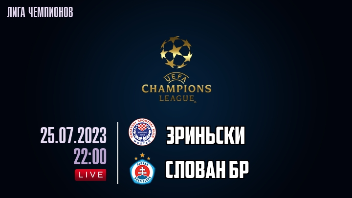 25 июля 2023 года, состоялась онлайн трансляция футбольного матча между футбольным клубом Зриньски и футбольным клубом Слован Бр, проходящего в рамках Лиги Чемпионов.