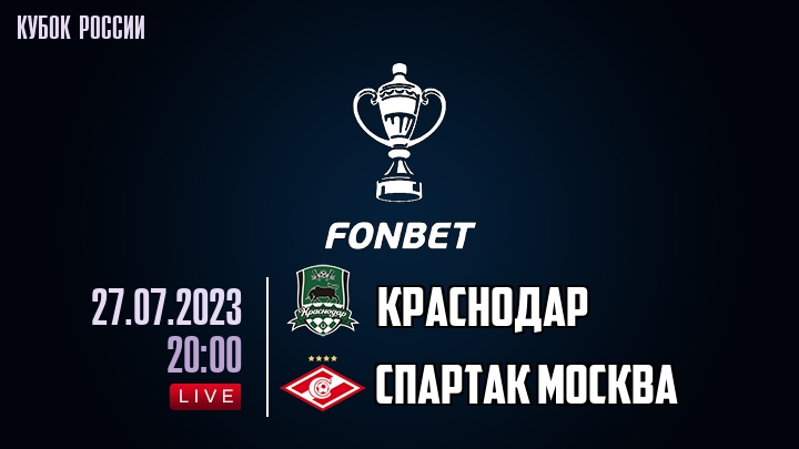 27 июля 2023 года, состоялась онлайн трансляция футбольного матча между футбольным клубом Краснодар и футбольным клубом Спартак Москва, проходящего в рамках Кубка России.