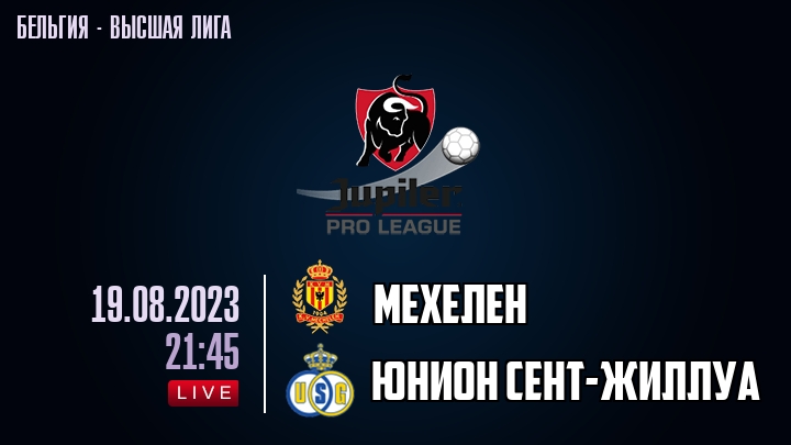 19 августа 2023 года, состоялась онлайн трансляция футбольного матча между футбольным клубом Мехелен и футбольным клубом Юнион Сент-Жиллуа, проходящего в рамках Высшей лиги Бельгии.