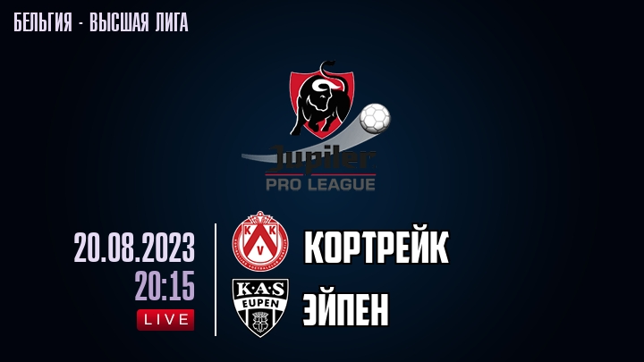 20 августа 2023 года, состоялась онлайн трансляция футбольного матча между футбольным клубом Кортрейк и футбольным клубом Эйпен, проходящего в рамках Высшей лиги Бельгии.
