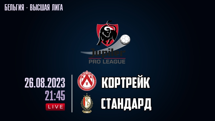 26 августа 2023 года, состоялась онлайн трансляция футбольного матча между футбольным клубом Кортрейк и футбольным клубом Стандард, проходящего в рамках Высшей лиги Бельгии.