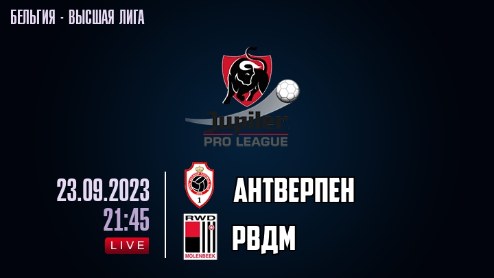 23 сентября 2023 года, состоялась онлайн трансляция футбольного матча между футбольным клубом Антверпен и футбольным клубом РВДМ, проходящего в рамках Высшей лиги Бельгии.