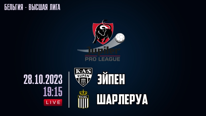 28 октября 2023 года, состоялась онлайн трансляция футбольного матча между футбольным клубом Эйпен и футбольным клубом Шарлеруа, проходящего в рамках Высшей лиги Бельгии.
